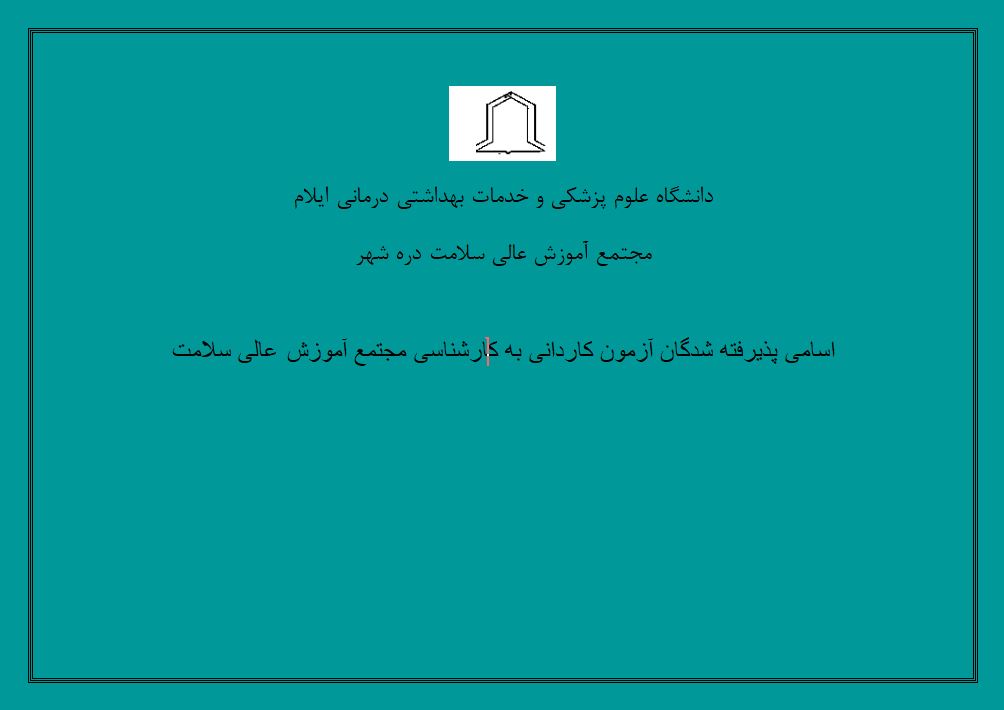 موفقیت دانشجویان مجتمع آموز عالی سلامت دره شهر در آزمون کاردانی به کارشناسی